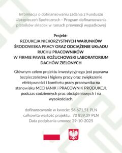 Informacja o dofinansowaniu zadania z Funduszu Ubezpieczeń Program dofinansowania płatników składek w ramach prewencji wypadkowej